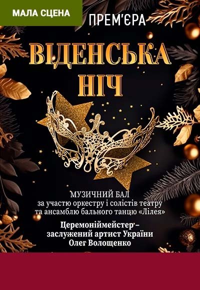 Музыкальный бал "Венская ночь" состоится 4 января 2026, 16:00, воскресенье в АМДТ им. Леси Украинки (Малая сцена). С помощью сервиса internet-bilet.ua, Вы сможете с легкостью забронировать, заказать и купить билеты на интересующий Вас концерт, спектакль, оперу, балет, мастер-классы, спортивные и детские мероприятия, оплатив их самым удобным для Вас способом: через интернет банковской картой VISA/MasterCard, наличными или курьером, если сделаете заказ билета c доставкой.